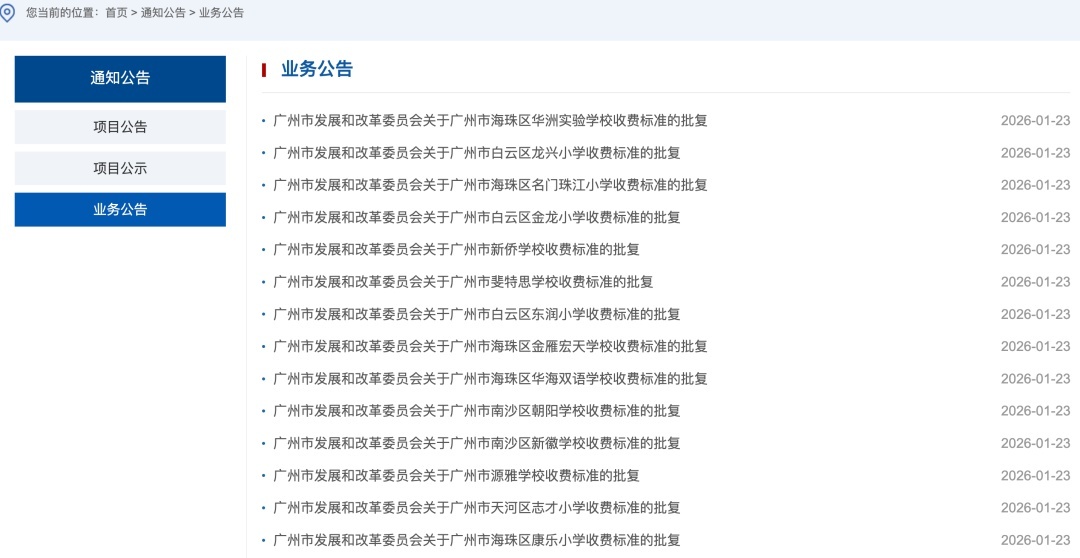 1月23日,广州市发展和改革委员会公布关于广州市源雅学校、广州市新侨学校、广州市斐特思学校等14所学校收费标准的批复。