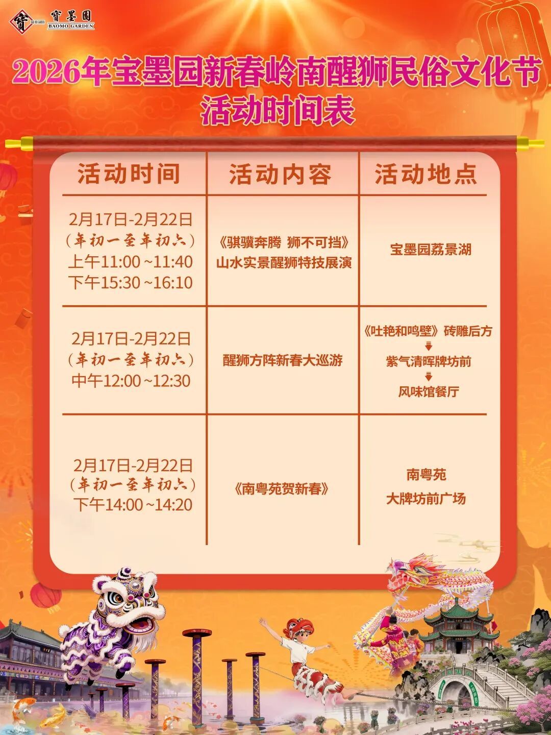2026年宝墨园新春岭南醒狮民俗文化节