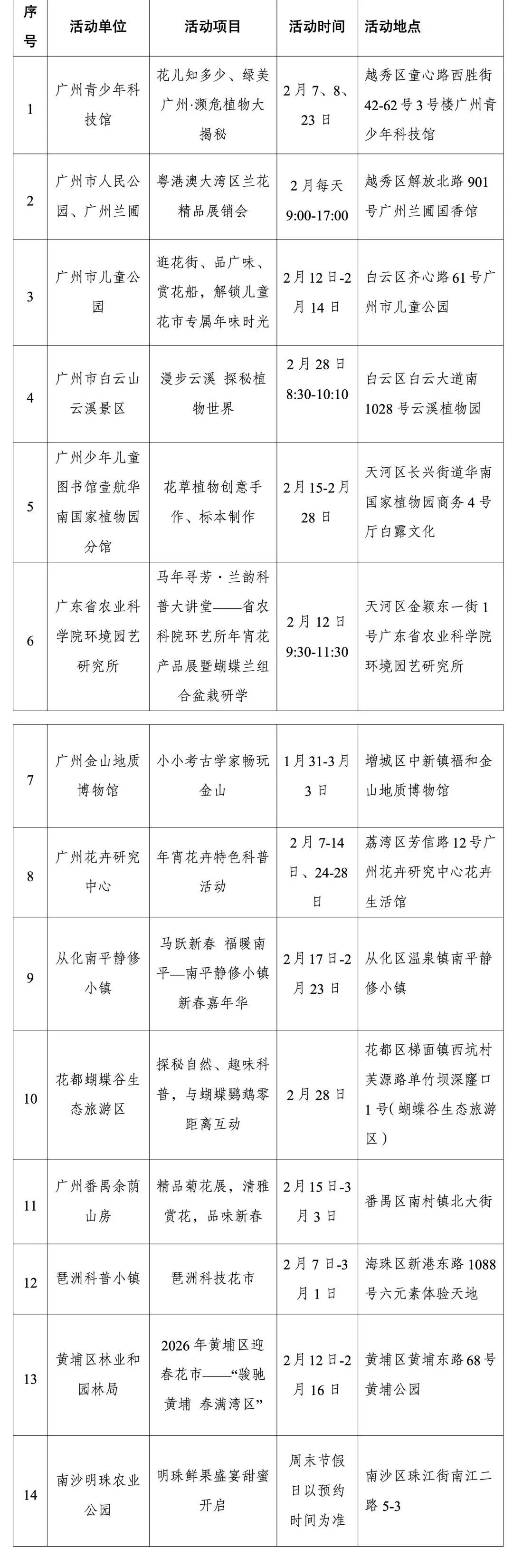 2026年广州科普花市部分重点活动一览表
