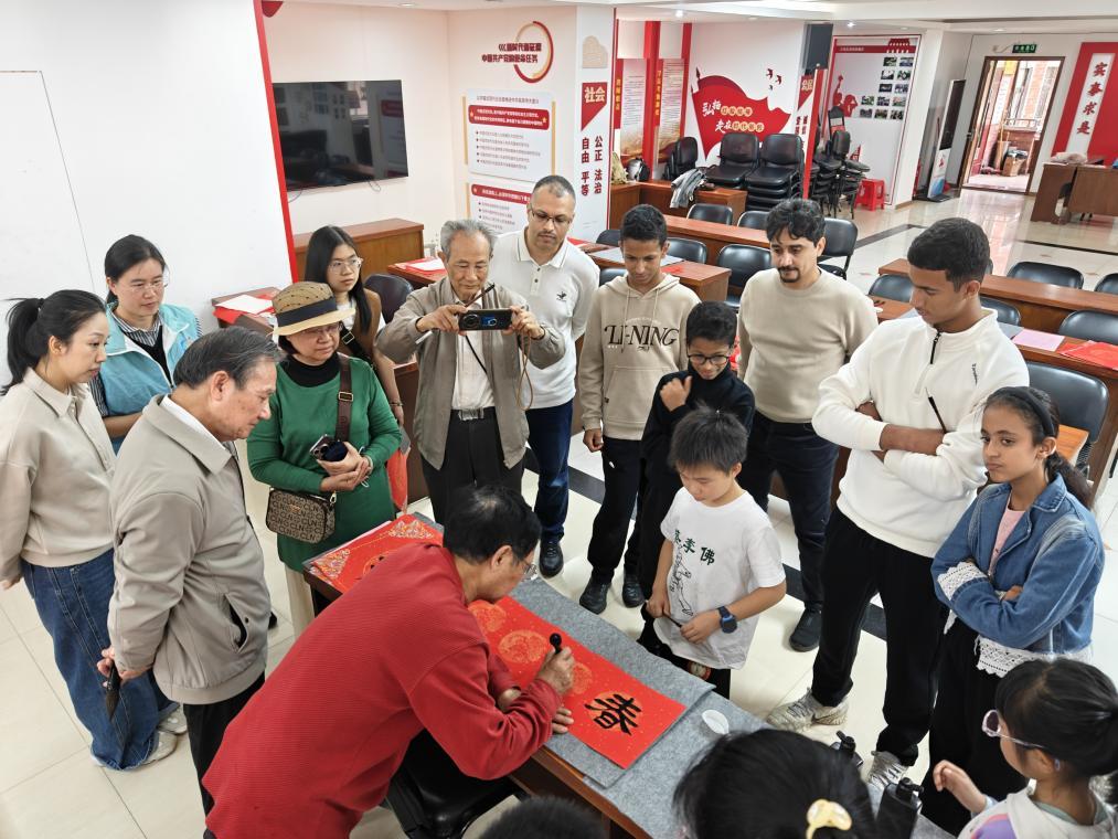 “在中国定居好几年了,过去只是‘看热闹’,看大家逛花街、贴春联、走亲串门……觉得好有意思。这两年我们也开始慢慢加入过年的队伍了,这次写春联、送福字活动,让我们有了独特的体验,特别棒!”来自也门的默罕默德拿着一张自己亲手写的“福”字高兴地说。