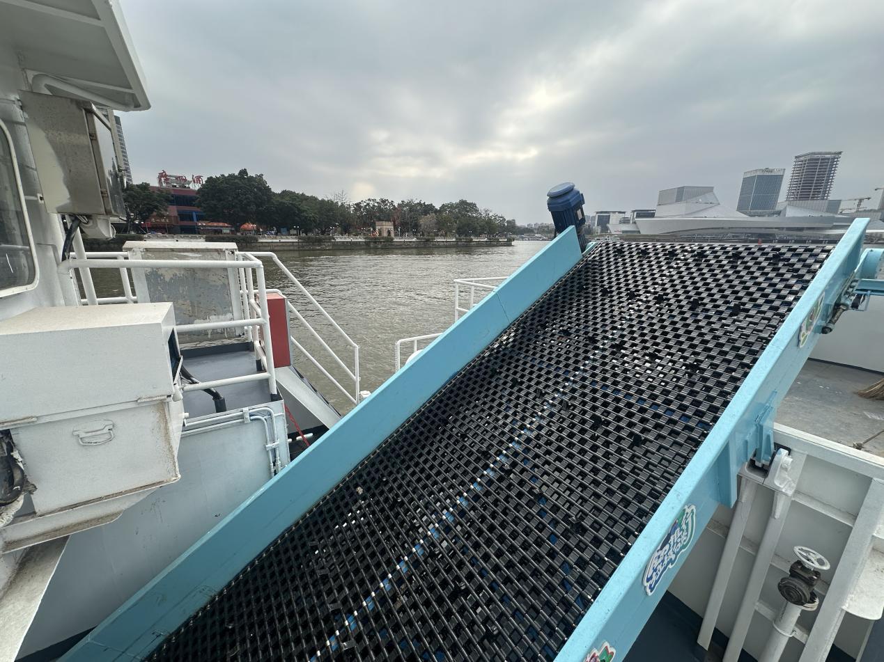 “大年初一的白鹅潭烟花汇演是重头戏,我们早早就制定了专项保障预案。”项目负责人吴奎介绍道,团队在汇演周边水域预置了多艘应急保洁船,汇演结束后立即开展拉网式清理,确保水面漂浮物随产随清。其中,作为作业主力的23米双体保洁船,堪称水上“巨无霸”,25吨的垃圾收集舱容量搭配高效作业系统,1小时工作量相当于2人手工打捞5小时,效率提升10倍。